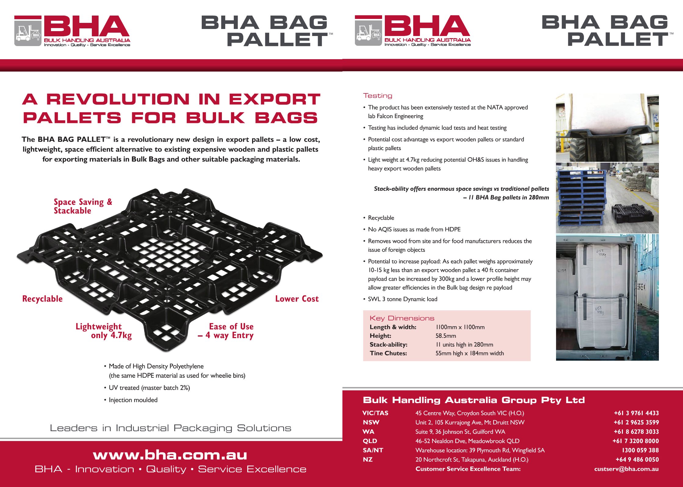 Bulk Handling Australia Group Pty Ltd (BHA) has released its revolutionary new slim line plastic export pallet for Bulk Bags onto the Australian and New Zealand markets.